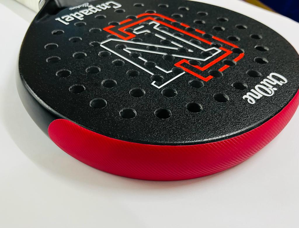 La ChiOne es el resultado de mi dedicación y pasión por el pádel. Cada detalle, desde el marco tubular de carbono 100% hasta el mango ergonómico, ha sido diseñado y probado por mí para asegurar un rendimiento excepcional en pista.